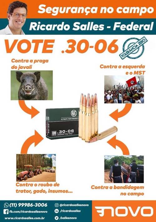 “Essas invasões, essa coisa de MST, quilombola, índio ameaçando propriedade produtiva, isso é um grande problema, isso é um atraso”, declara em vídeo no seu canal no Youtube.