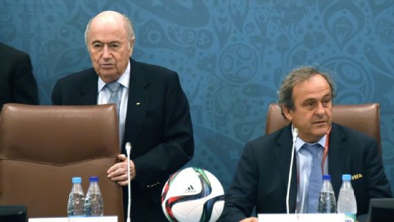 Joseph Blatter, à esquerda, e Michel Platini, à direita Marcus Brandt/picture alliance via Getty Images